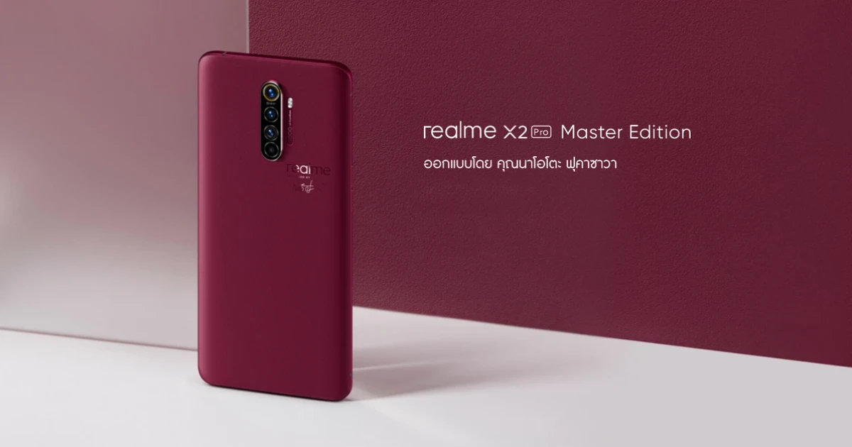 realme X2 Pro Master Edition ได้รับการออกแบบโดยการร่วมมือระหว่าง realme และดีไซเนอร์ชื่อดังระดับโลกอย่าง คุณนาโอโตะ ฟุคาซาวา ที่ร่วมกันสร้างสรรค์สมาร์ทโฟนที่มาพร้อมดีไซน์โดดเด่นมีเอกลักษณ์เฉพาะตัว คุณนาโอโตะ ฟุคาซาวา ดำรงตำแหน่ง Design Director ของ realme ซึ่งยึดแนวคิดการออกแบบโดยนำเสนอองค์ประกอบที่เรียบง่ายและแสดงถึงความงามของสิ่งรอบตัวรอบชีวิต โดย realme X2 Pro Master (สี Red Brick และ สี Concrete) ได้รับแรงบันดาลใจจากพื้นผิวของสถาปัตยกรรมรอบตัว โดยผู้ใช้งานจำนวนมากชื่นชอบในดีไซน์ที่ประณีตและเป็นเอกลักษณ์นี้