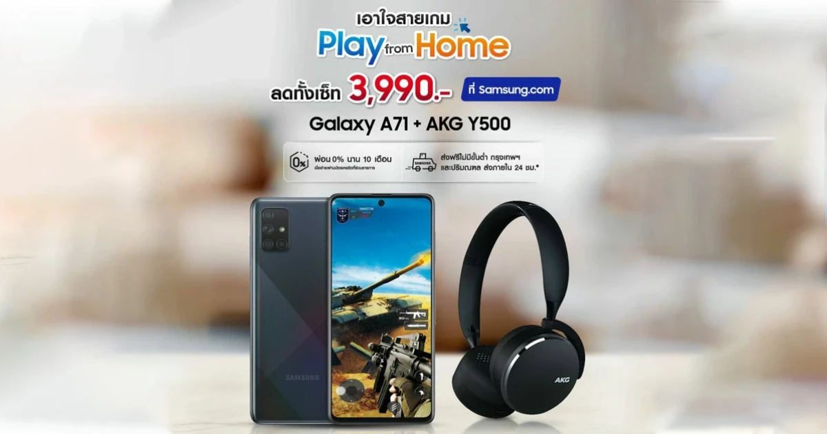 จับคู่ปัง! Samsung Galaxy A71 คู่ หูฟัง AKG Y500 ลดทั้งเซ็ต 3,990 บาท เอาใจสายเกมส์ Play from Home