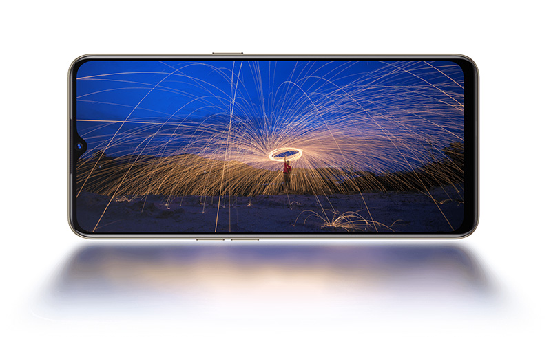 - หน้าจอแสดงผล Waterdrop ขนาด 6.4 นิ้วความละเอียด FHD+ (1,080 x 2,400 พิกเซล) อัตราส่วนหน้าจอต่อเครื่องถึง 83% ด้วยอัตราส่วนภาพ 20:9