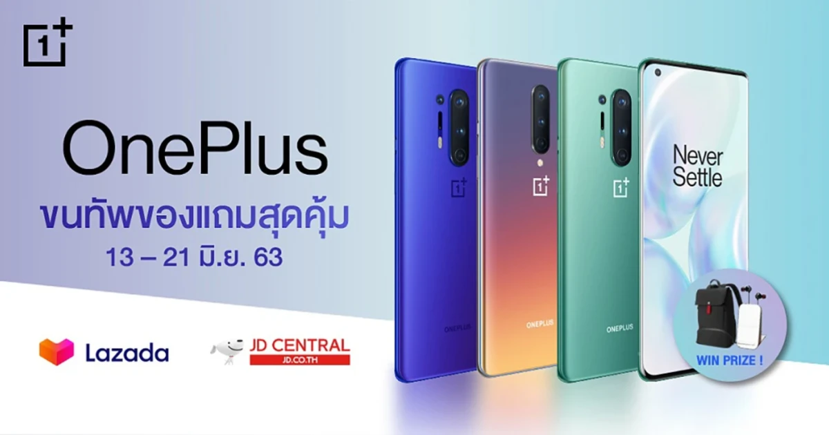 OnePlus แบรนด์สมาร์ทโฟนสุดพรีเมียม ที่ได้เปิดตัวสมาร์ทโฟนแฟล็กชิปรุ่นใหม่ล่าสุดในเดือนพฤษภาคมที่ผ่านมาด้วยกัน 2 รุ่น คือ OnePlus 8 และ OnePlus 8 Pro ที่มาในคอนเซ็ปต์ Lead with Speed เร็วแรง ทรงพลัง ในดีไซน์ที่สวยงาม โดยในครั้งนี้ทาง OnePlus ได้ขนทัพของแถมสุดคุ้ม มอบดีลสุดพิเศษบนช่องทางออนไลน์ JD Central และ LAZADA สำหรับผู้สั่งซื้อสมาร์ทโฟนเรือธง OnePlus 8 Series ที่มาพร้อมเทคโนโลยีสุดล้ำ ด้วยหน้าจอที่สวยที่สุดกับค่า Refresh Rate สูงสุดถึง 120 Hz พร้อมทั้งลุ้นรับของแถมสุดพรีเมียม และโปรโมชั่นกลางปีสุดพิเศษครั้งใหญ่ ในวันที่ 13 - 21 มิ.ย. 63 นี้
