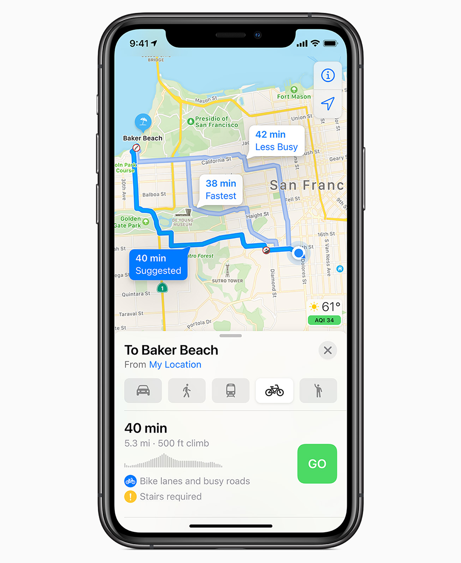 ปรับปรุงและเพิ่มความสามารถใหม่ให้ Apple Maps รองรับการแสดงข้อมูลร้านค้า, โรงแรม และสิ่งอำนวยความสะดวกต่างๆ ในบริเวณใกล้เคียงได้ในรูปแบบ Discover รวมทั้งยังสามารถเลือกคำนวณระยะทางและเวลาที่ใช้เดินทางไปยังจุดหมายได้ด้วย ทำให้เราสามารถเลือกสำรวจเส้นทาง ระยะทางที่ใช้ และเวลาที่เดินทางในวิธีต่างๆ ก่อนเดินทางได้