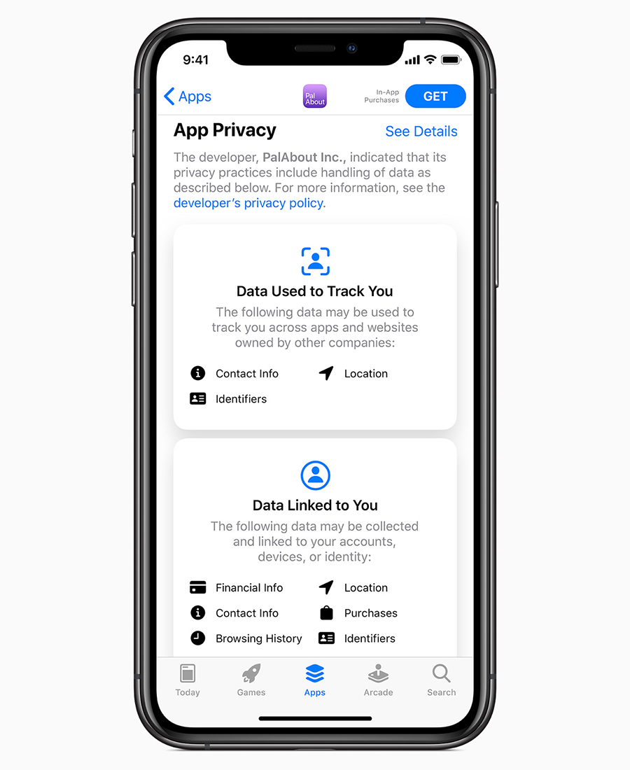 ปรับรูปแบบหน้าอินเทอร์เฟซของ App Privacy ใหม่ให้ดูง่าย และเข้าใจมากขึ้นว่าแอปพลิเคชั่นนั้นๆ ต้องการเรียกใช้ข้อมูลความเป็นส่วนตัวบนเครื่องอะไรบ้าง ซึ่งรองรับการแสดงผลบน App Store ด้วย ทำให้เราทราบก่อนกดดาวน์โหลดได้ว่าแอปฯ นั้นสามารถเข้าถึงข้อมูลอะไรเราได้บ้างบนเครื่อง