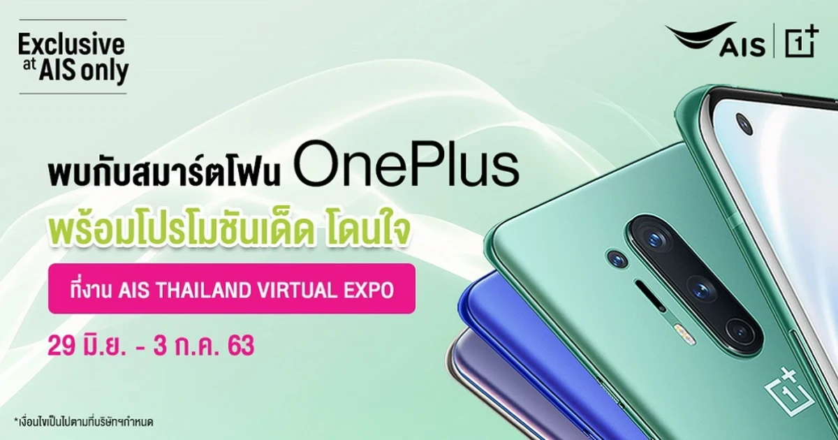 OnePlus จัดเต็มโปรโมชั่นสุดคุ้มในงาน AIS Thailand Virtual Expo 29 มิ.ย - 3 ก.ค. 63