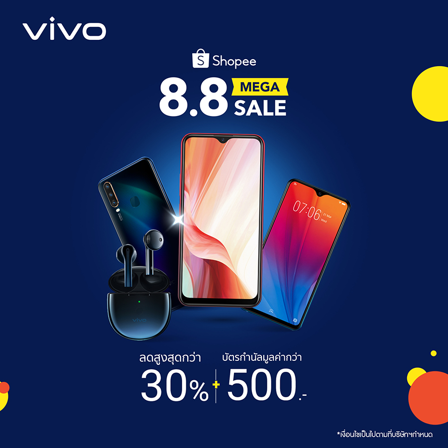 Shopee x Vivo Thailand Official Store 8.8 ซื้อคู่สุดคุ้ม แฮปปี้คูณสอง! ลดสูงสุดถึง 30% พร้อมของแถมอีกเพียบ