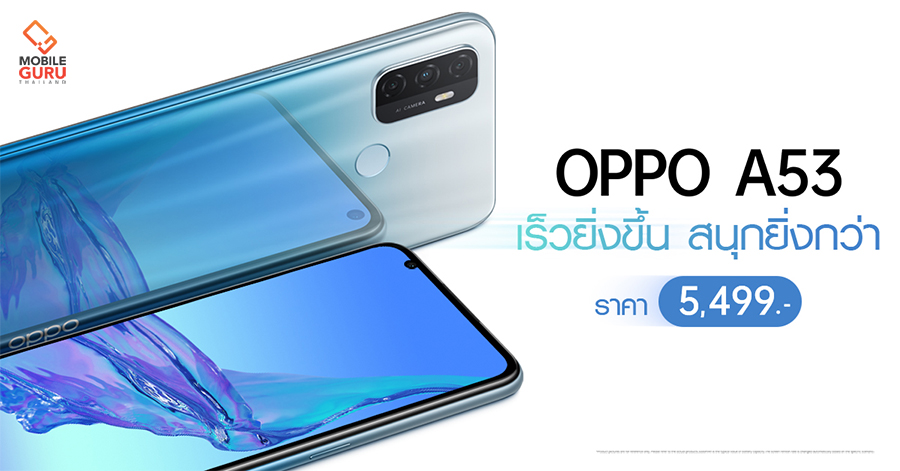 OPPO A53 เร็วยิ่งขึ้น สนุกยิ่งกว่า! กับสเปคจัดหนัก จัดเต็มทุกความคุ้มค่า เพียง 5,499 บาท จำหน่ายอย่างเป็นทางการวันที่ 19 กันยายน 2563 นี้