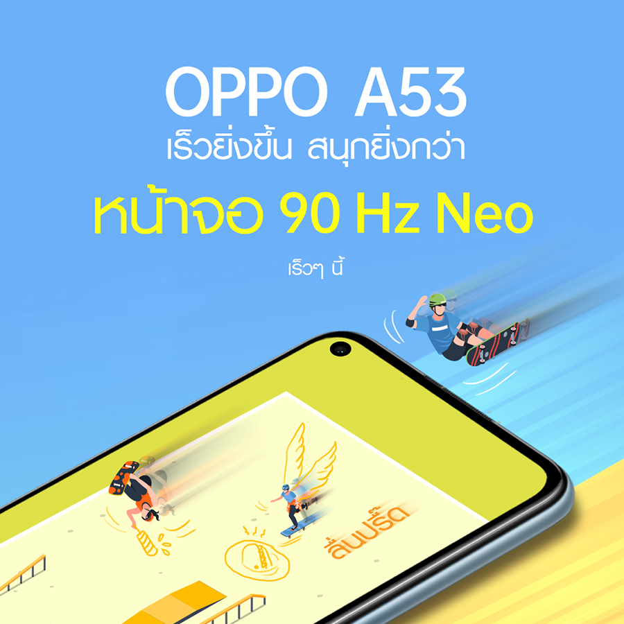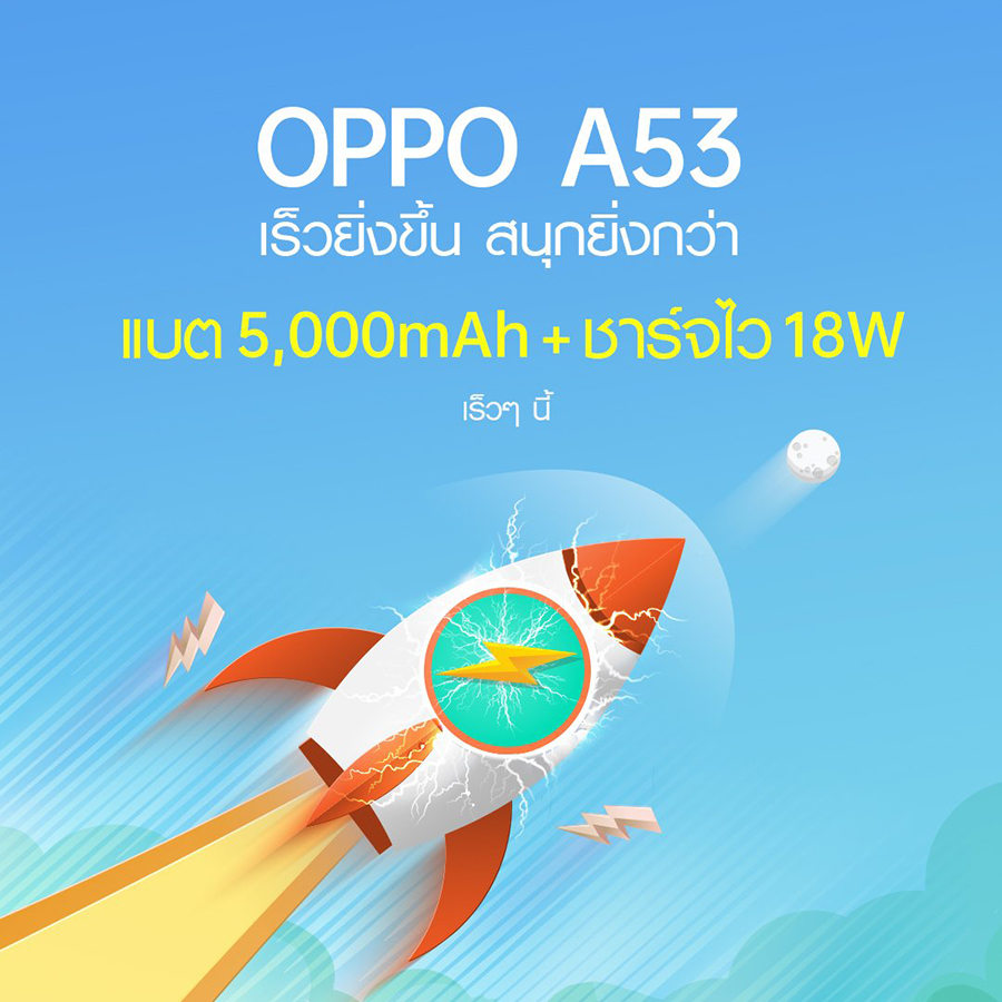 OPPO เปิดตัวสมาร์ทโฟนรุ่นล่าสุดจาก A Series หลังจากได้รับกระแสตอบรับเป็นอย่างดีจากรุ่นก่อนหน้านี้ โดยพร้อมจุดเด่นและความคุ้มค่า โดย OPPO A53 เปิดตัวภายใต้สโลแกน "เร็วยิ่งขึ้น สนุกยิ่งกว่า" พร้อมตอบสนองทุกความต้องการของผู้บริโภคไม่ว่าจะเป็นด้านของสเปค กล้อง ในราคาสุดคุ้ม สามารถตอบโจทย์กลุ่มผู้ใช้งานได้เป็นอย่างดี พร้อมมอบความเต็มอิ่มในทุกความบันเทิง