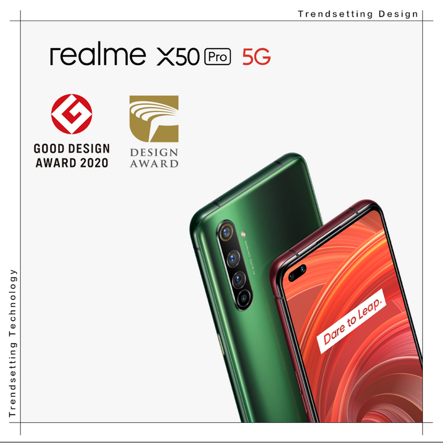 - realme X50 Pro 5G ได้รับรางวัลจาก Good Design Award 2020 และ Golden Pin Design Award