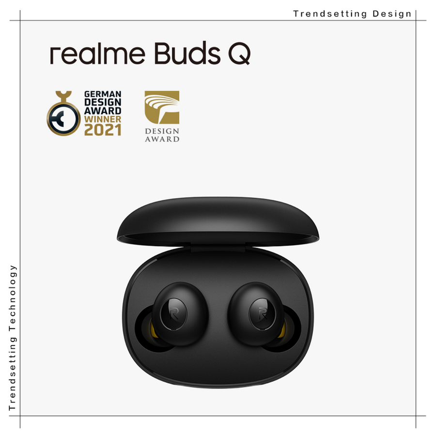 สัมผัสดีไซน์ระดับโลกจาก realme Buds Q ที่ร่วมออกแบบกับ Jose Levy ดีไซน์เนอร์จากแบรนด์ดังระดับโลกอย่าง Hermes โดยเป็นหูฟังไร้สายรูปทรงถั่วแรกรุ่นแรกจาก realme ที่ได้รับแรงบันดาลใจมาจากสิ่งรอบตัวที่ทุกคนมองข้ามไปอย่างก้อนหิน เหล่าคณะกรรมการจาก German Design Award มีความคิดเห็นตรงกันว่า "เป็นความงามที่มาในขนาดกะทัดรัดและน้ำหนักที่เบา realme Buds Q ยังสร้างความประทับใจในฟังก์ชั่นควบคุมแบบสัมผัสและการใช้งานที่โดดเด่น"