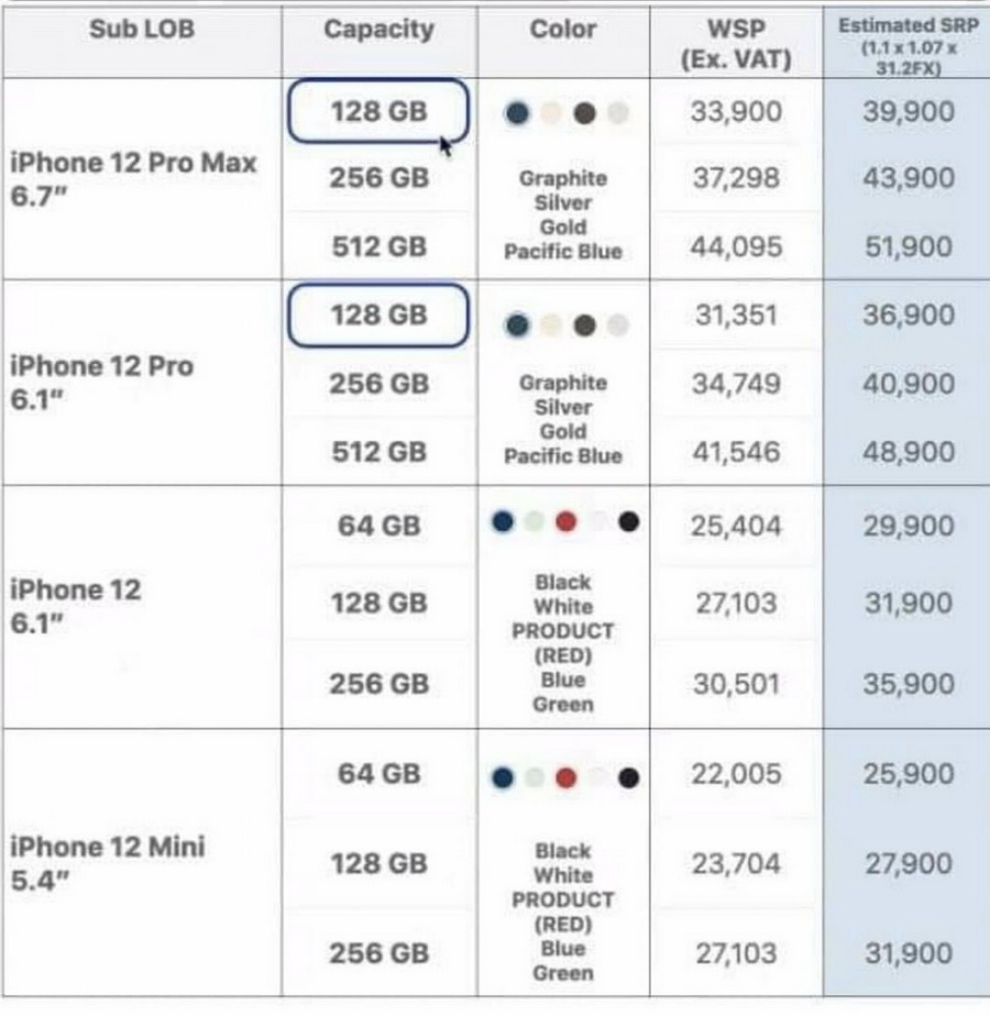 ล่าสุดมีข้อมูลราคาของ iPhone 12 Series ที่จะวางจำหน่ายในไทยหลุดออกมาแบบครบทุกรุ่น น่าสนใจทีเดียวนะครับ แต่ก็เป็นราคาที่โดดจากในต่างประเทศเยอะอยู่พอสมควร มาดูรายละเอียดราคาของแต่ละรุ่น แต่ละความจุกันได้เลย (เน้นย้ำนะครับ ว่าเป็นข้อมูลที่เป็นข่าวลือเท่านั้น ยังไม่ใช่ราคาอย่างเป็นทางการ)