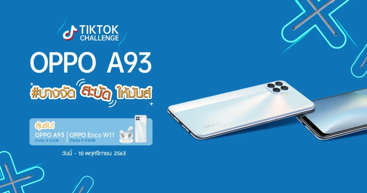 ลุ้นรับ สมาร์ทโฟน OPPO A93 ฟรี! กับกิจกรรม TikTok Challenge ตั้งแต่วันนี้ - 10 พ.ย. 63