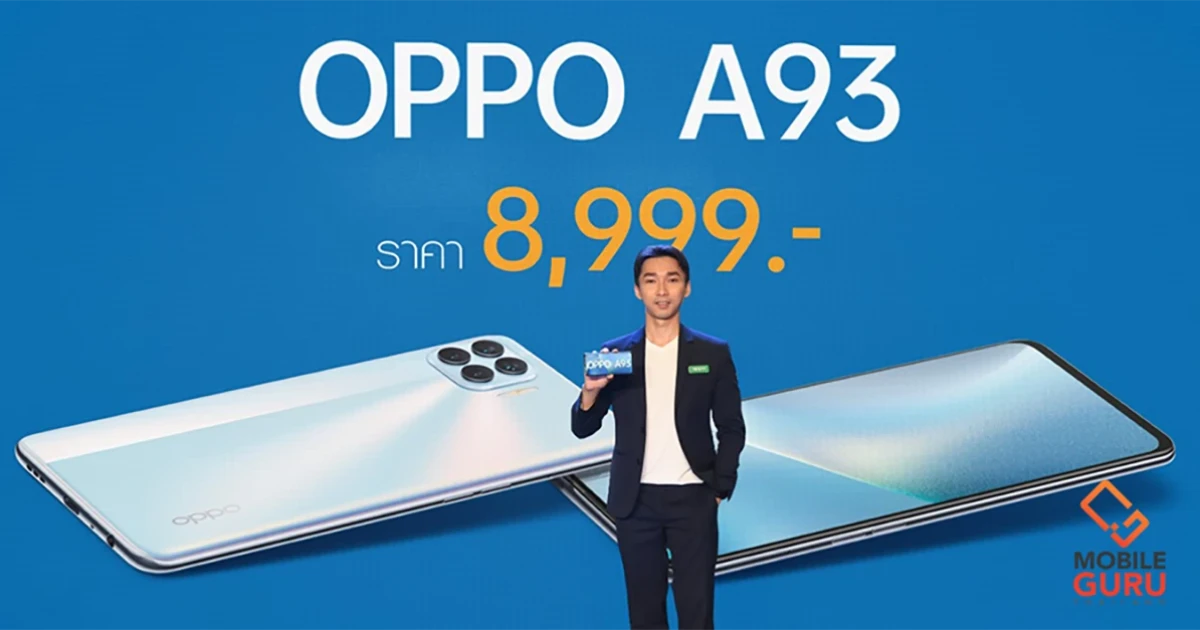 OPPO A93 สมาร์ทโฟนดีไซน์บางเฉียบ ภายใต้สโลแกน 'สนุกทุกโมเมนต์' ในราคา 8,999 บาท