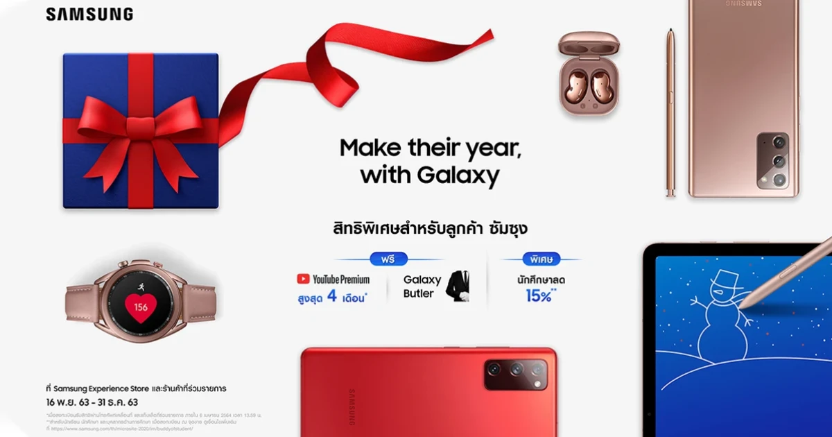 Make their year, with Galaxy โปรโมชั่นสุดพิเศษส่งท้ายปีจาก ซัมซุง วันนี้ - 31 ธันวาคม 2563