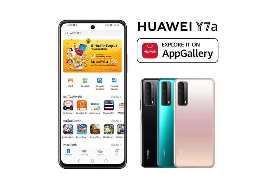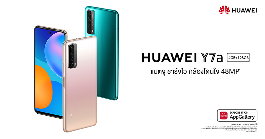 ตอบโจทย์ครบทุกความบันเทิงในที่เดียวกับ HUAWEI Y7a สมาร์ทโฟนรุ่นจิ๋ว สมรรถนะแจ๋ว ทั้ง 4 กล้องหลังโดนใจ AI อัจฉริยะ เทคโนโลยีชาร์จไว และแบตเตอรี่ขนาดใหญ่เล่นได้ทั้งวันไม่มีหลุด มาในราคาสบายกระเป๋าเพียง 5,999 บาทเท่านั้น พร้อมดีไซน์เตะตาด้วย 3 สี 3 สไตล์ให้เลือก คือ Blush Gold, Crush Green, และ Midnight Black วางจำหน่ายแล้วที่ HUAWEI Experience Store และร้านค้าตัวแทนจำหน่ายที่ร่วมรายการทั่วประเทศ รวมทั้งหัวเว่ยสโตร์ออนไลน์