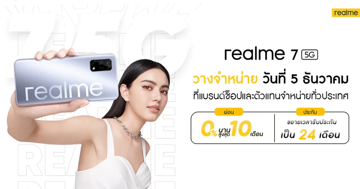 เตรียมเป็นเจ้าของ realme 7 5G สมาร์ทโฟน 5G ทรงพลัง 5 ธ.ค. นี้ พร้อมโปรผ่อน 0% และประกัน 24 เดือน