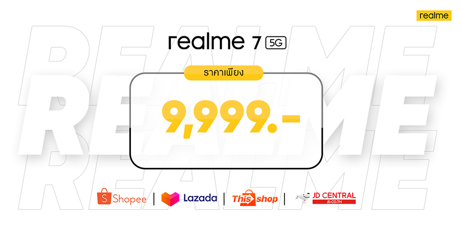 เป็นเจ้าของ realme 7 5G ได้ผ่านช่องทางตัวแทนจำหน่าย ไม่ว่าจะเป็น Banana, BKK, Cyborg Kong, Kingkongphone, CSC, TG Fone, Jaymart และ IT City ได้พร้อมกันวันที่ 5 ธันวาคม ในราคาเริ่มต้นเพียง 3,099 บาท พร้อมโปรโมชั่นผ่อน 0% สูงสุด 10 เดือนและรับประกันเครื่องนาน 24 เดือน