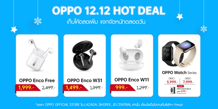 รวมดีลเด็ด! OPPO 12.12 สมาร์ทโฟนและแก็ดเจ็ต ลดสูงสุด 60% ที่ Lazada, Shopee และ JD Central