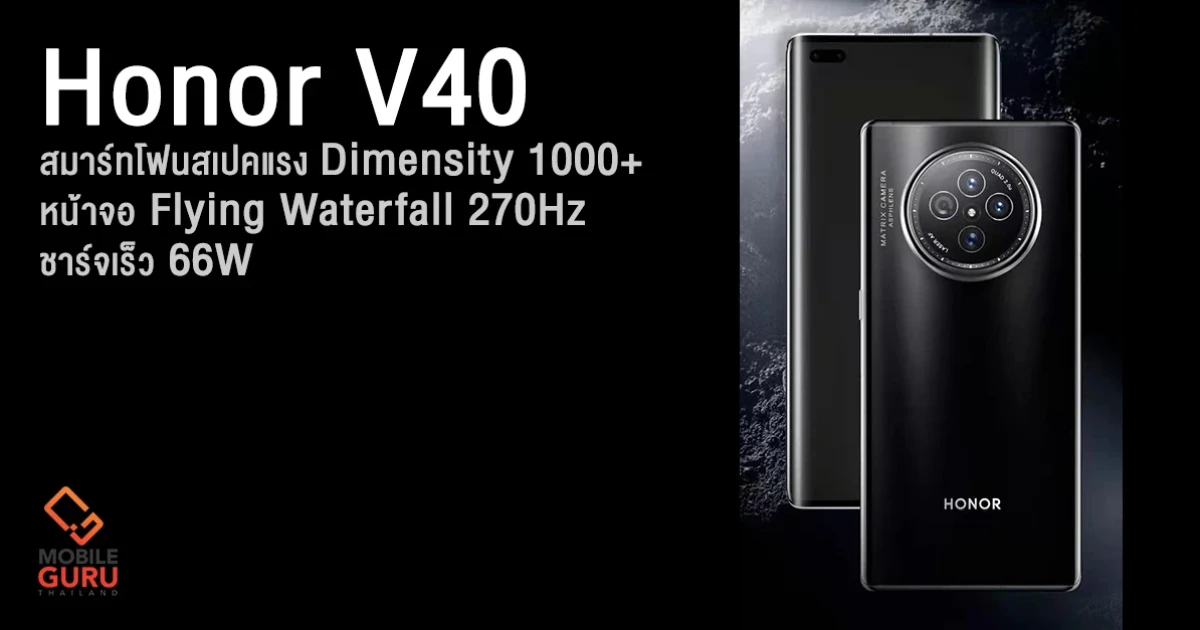 Honor V40 สมาร์ทโฟนสเปคแรง Dimensity 1000+ หน้าจอโค้ง Flying Waterfall 270Hz ชาร์จเร็ว 66W