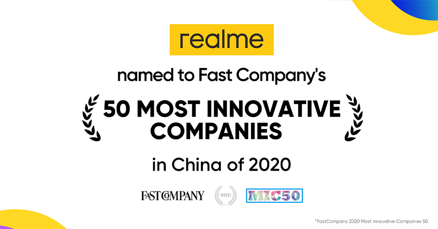 นิตยสาร Fast Company เป็นหนึ่งในสามสื่อธุรกิจที่มีชื่อเสียงระดับโลก ซึ่งมีชื่อเสียงระดับเดียวกันกับ "Fortune" และ "Business Week" การจัดอันดับ "50 สุดยอดบริษัทนวัตกรรมในจีน" แสดงถึงประสิทธิภาพด้านนวัตกรรมที่ครอบคลุมองค์กรทั่วโลก โดยมุ่งมั่นที่จะค้นหาที่สุดของขีดความสามารถด้านการแข่งขันนวัตกรรมและมูลค่าการลงทุนทั่วโลก จากความเชี่ยวชาญและหลักฐานการอ้างอิงมูลค่าที่น่าเชื่อถือของ Fast Company ทำให้การจัดอันดับได้รับการยอมรับว่าเป็นมูลค่าทางธุรกิจ และการลงทุนสำหรับบริษัทต่างๆ ซึ่งบริษัทที่มีชื่อเสียงของจีน อย่างเช่น Tencent DJI และ Alibaba ล้วนถูกนำเสนอชื่อให้อยู่ในการจัดอันดับก่อนหน้านี้ ในปี 2564 ความท้าทายจากสภาวะเศรษฐกิจที่ตกต่ำทั่วโลกทำให้เกณฑ์การคัดเลือกของ Fast Company ในครั้งนี้แตกต่างจากครั้งก่อน โดยคัดเลือกบริษัทที่สามารถเติบโตต่อไปได้ และสามารถรักษาความยืดหยุ่น การคงอยู่ในช่วงทุกข์ยาก การปรับตัวให้เข้ากับสภาพแวดล้อม การยอมรับการเปลี่ยนแปลง แต่ในขณะเดียวกันก็ยังคงยืนหยัดในความดี ในฐานะแบรนด์ที่ล้ำสมัย realme ยึดมั่นในแนวคิดของแบรนด์ "Dare to Leap" และยังคงเติบโตต่อไปท่ามกลางวิกฤติเศรษฐกิจและกลายเป็น 1 ในแบรนด์สมาร์ทโฟนที่มีการเติบโตอย่างรวดเร็วในช่วง 2 ไตรมาสแรกของปี 2563 และยืนหยัดอย่างมั่นคงท่ามกลางแบรนด์สมาร์ทโฟนหลักอื่นๆ ในโลก