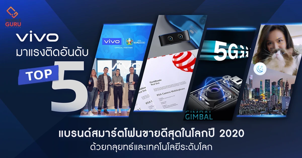 Vivo ติดอันดับท็อป 5 แบรนด์สมาร์ตโฟนยอดขายสูงสุดในโลก พิสูจน์แบรนด์คุณภาพ ครองใจผู้ใช้ทั่วโลก