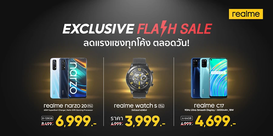 realme ยกขบวนสมาร์ทโฟนและผลิตภัณฑ์ AIoT จัด Flash Sale มาลดแรงแซงทุกโค้งตลอดทั้งวัน ดังนี้