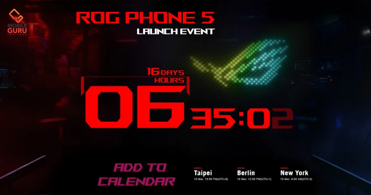 ASUS ยืนยัน เตรียมพบกับ ROG Phone รุ่นใหม่ "ROG Phone 5" อย่างเป็นทางการ ในวันที่ 10 มีนาคม 2564 นี้! และอย่างที่ทราบกันดีอยู่แล้วว่าจริง ๆ รุ่นนี้เป็นรุ่นที่ 4 แต่จะนับข้ามตัวเลข 4 ไป (เนื่องจากเป็นเลขที่ไม่เป็นมงคลสำหรับชาวจีน) จึงมาในชื่อของ "ROG Phone 5" แทนนั่นเอง
