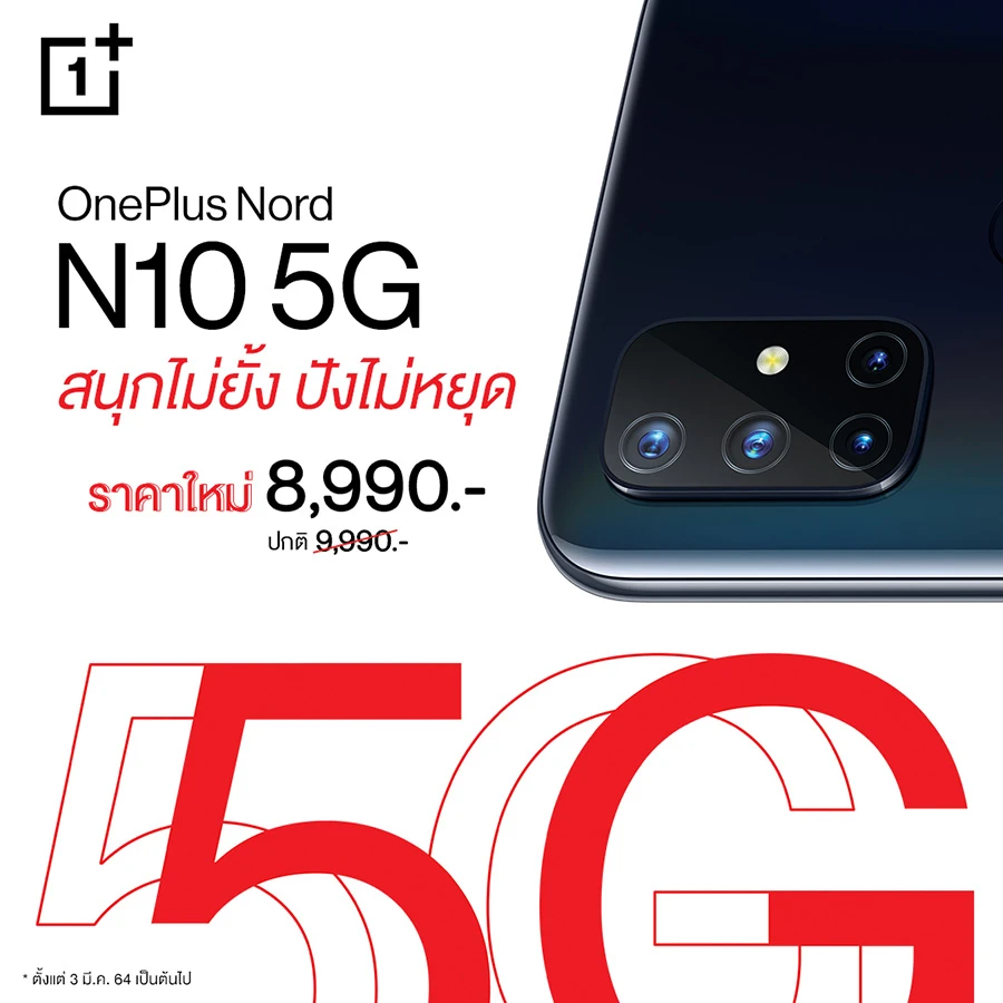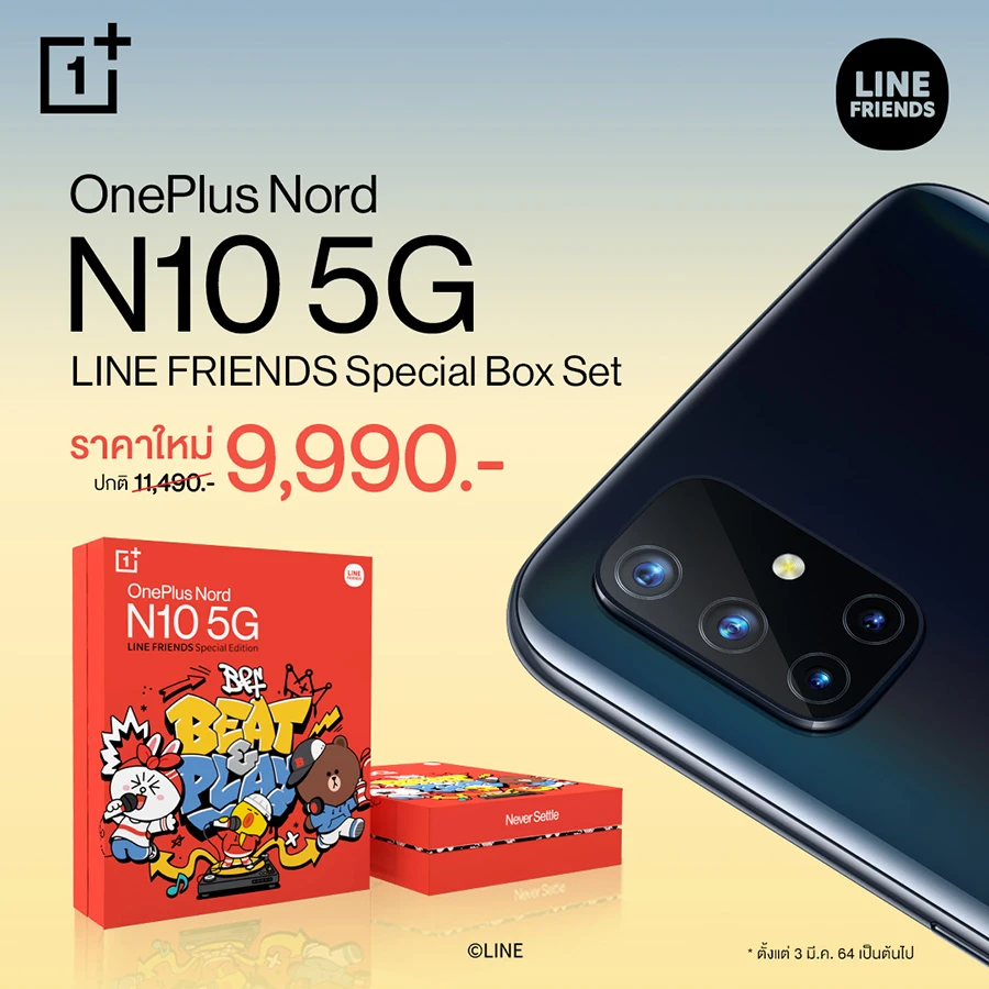 ต้อนรับเดือนมีนาคม OnePlus จัดโปรโมชันเซอร์ไพรซ์สุดพิเศษ คุ้มยิ่งกว่าเดิม! กับการปรับลดราคาทั้ง OnePlus Nord N10 5G เหลือเพียง 8,990 บาท และ OnePlus Nord N10 5G LINE FRIENDS Special Box Set เหลือเพียง 9,990 บาทเท่านั้น