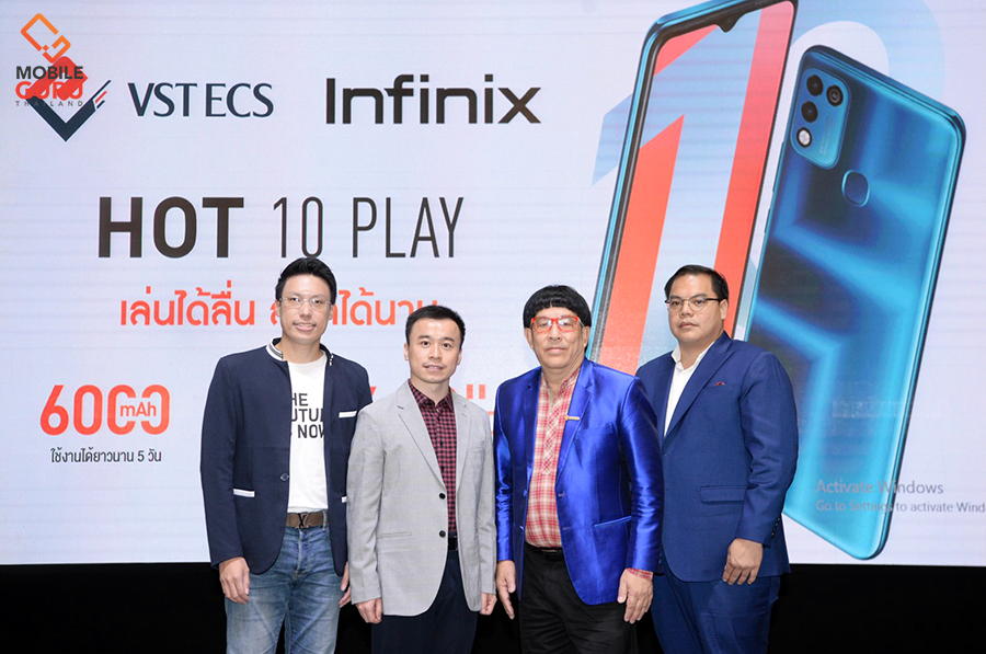 อินฟินิกซ์ (Infinix) แบรนด์สมาร์ตโฟนระดับโลก ตอกย้ำความสำเร็จเดินหน้ารุกตลาดเอนเตอร์เทนเมนต์โฟนอย่างต่อเนื่อง เปิดตัว Infinix HOT 10 Play ภายใต้สโลแกน "เล่นได้ลื่น สนุกได้นาน" พร้อมชูจุดขายแบตอึด 6,000 mAh เสริมประสิทธิภาพการใช้งานด้วยชิปเซ็ททรงพลังจาก MediaTek Helio G35 และหน้าจอใหญ่ 6.82 นิ้ว ในราคาสุดคุ้มเพียง 3,599 บาท ลุยเจาะตลาดเด็กรุ่นใหม่และผู้ที่ชื่นชอบการดูหนัง ฟังเพลงออนไลน์ โดยร่วมมือกับ บริษัท วีเอสที อีซีเอส (ประเทศไทย) จำกัด พันธมิตรอันแข็งแกร่งที่ดำเนินธุรกิจเป็นผู้นำเข้าและจัดจำหน่ายสินค้าด้านไอทีชั้นนำ ให้เป็นผู้แทนจำหน่ายหลักสมาร์ตโฟน Infinix HOT 10 Play ในประเทศไทยเป็นรายแรก เพื่อให้ผู้บริโภคได้เป็นเจ้าของสมาร์ตโฟนสเป็กดี ในราคาคุ้มค่า และตอบสนองความพึงพอใจมากที่สุด