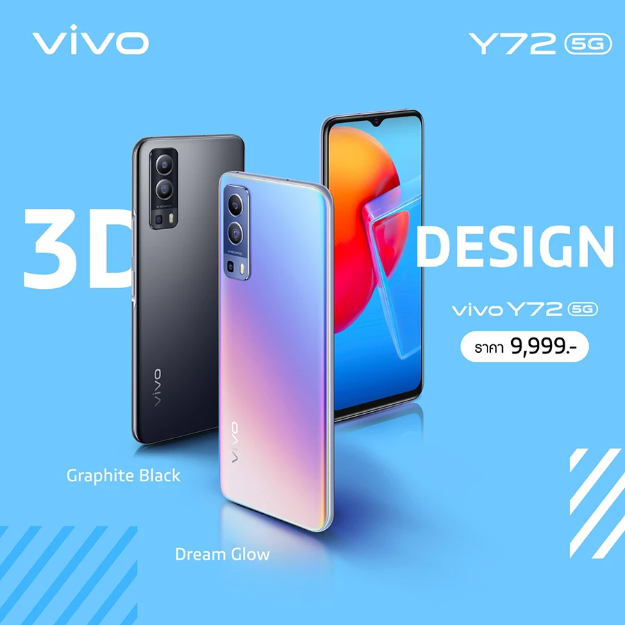 หากใครที่กำลังมองหาสมาร์ตโฟนที่จัดเต็มครบทุกฟีเจอร์คุณภาพ ตอบโจทย์ทุกไลฟ์สไตล์คนรุ่นใหม่ พร้อมดีไซน์สวยโดดเด่นบ่งบอกความเป็นตัวเองในราคาที่จับต้องได้ เพียง 9,999 บาท จัดไปเลยกับ Vivo Y72 5G จับจองเป็นเจ้าของได้แล้ววันนี้ ที่ Vivo Brand Shop ทุกสาขา ร้านค้าตัวแทนจำหน่ายทั่วประเทศ และช่องทางออนไลน์ Vivo Official Online Store