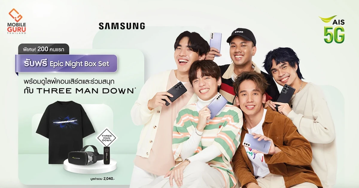 "Epic Night Box Set" เอาใจแฟนคลับ Three Man Down เฉพาะผู้ซื้อ Galaxy S21 Series 5G จำกัด 200 เซ็ต!