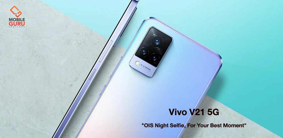 Vivo เปิดตัว Vivo V21 5G สมาร์ตโฟน 5G ที่มีจุดเด่นในเรื่องของกล้องหน้า 44MP พร้อมระบบกันสั่น OIS รุ่นแรกของโลก ภายใต้สโลแกน "OIS Night Selfie, For Your Best Moment" สานต่อเอกลักษณ์ของกล้องหน้าบน V Series ที่เป็น Signature ของ วีโว่