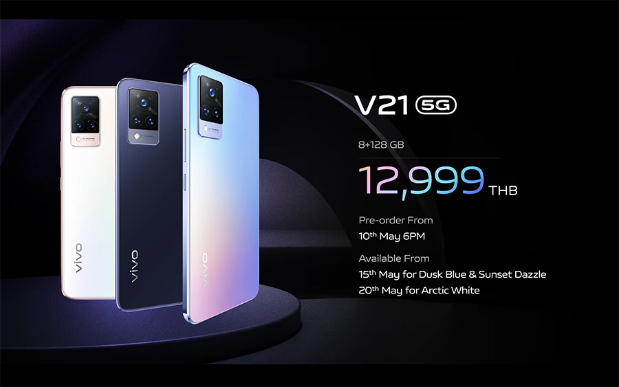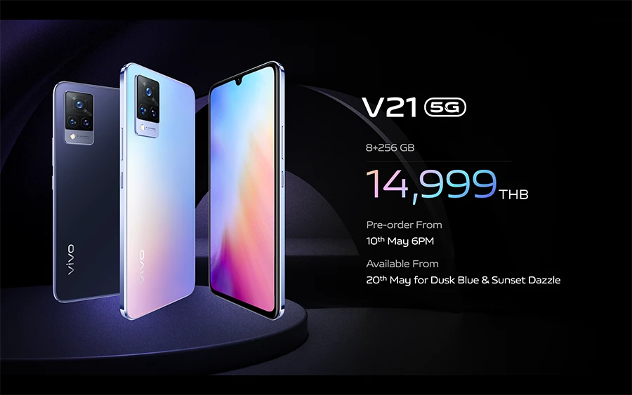 Vivo V21 5G สมาร์ตโฟน 5G กล้องหน้า 44MP OIS รุ่นแรกของโลก! ราคา 12,990 บาท