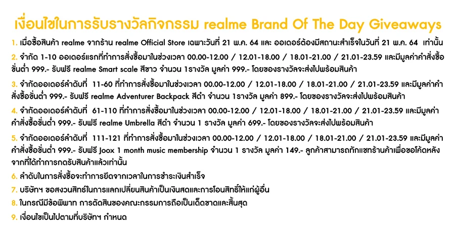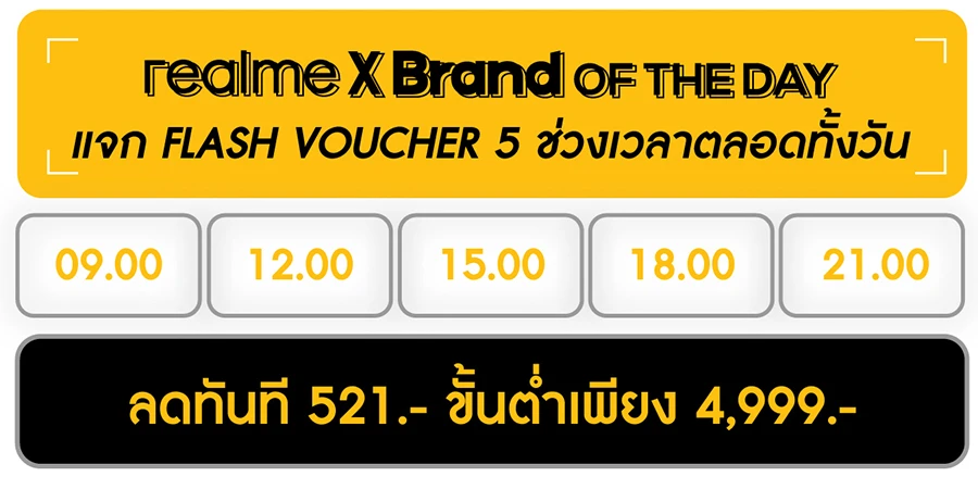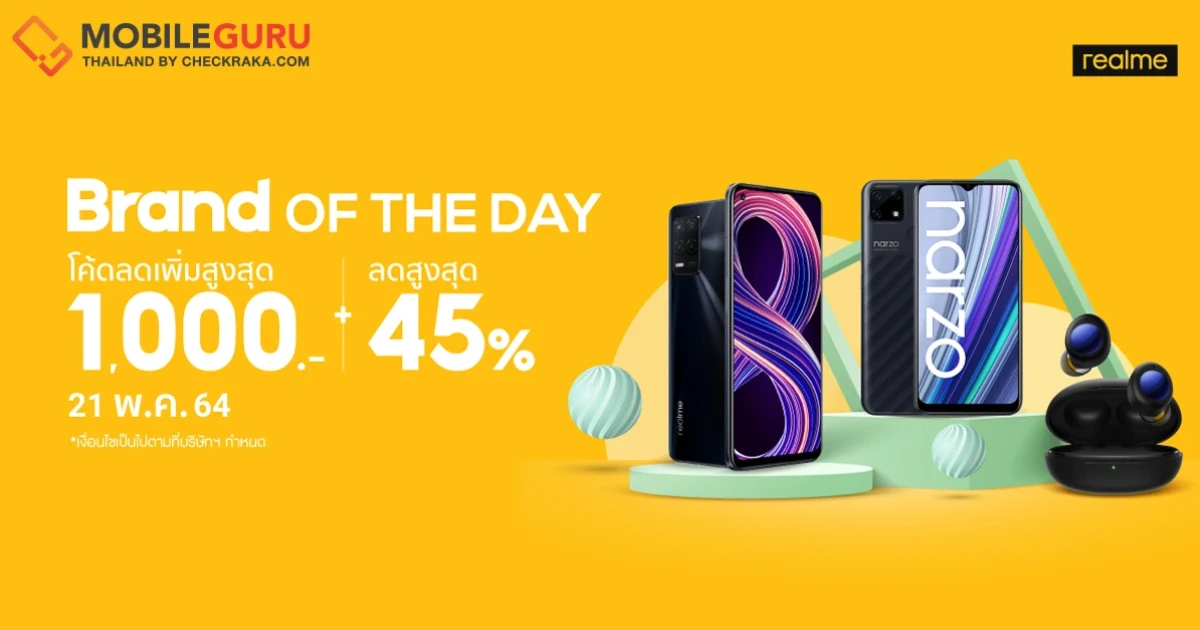 21 พ.ค. นี้ มาฉลองกับ realme ในแคมเปญ realme x Brand Of The Day ลดสูงสุด 45% พร้อมโค้ดลดกว่า 1,000.-