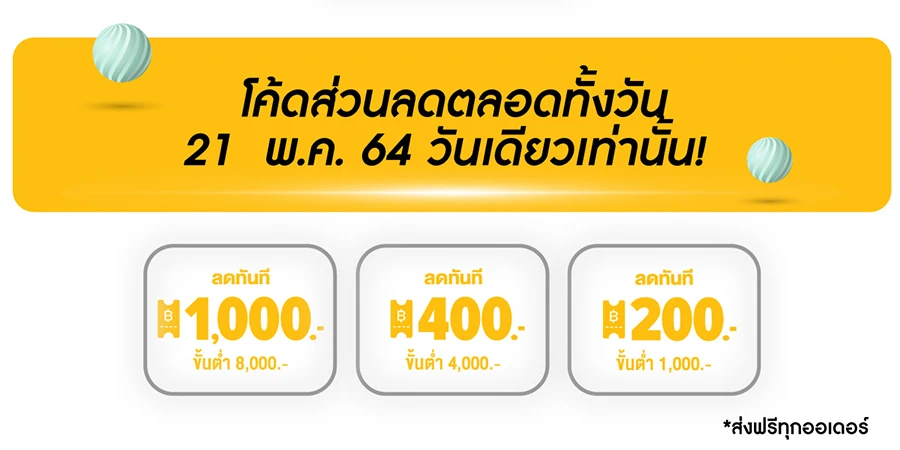 โปรโมชั่นที่ 1 สำหรับในทุกการสั่งซื้อในวันที่ 21 พฤษภาคม 64