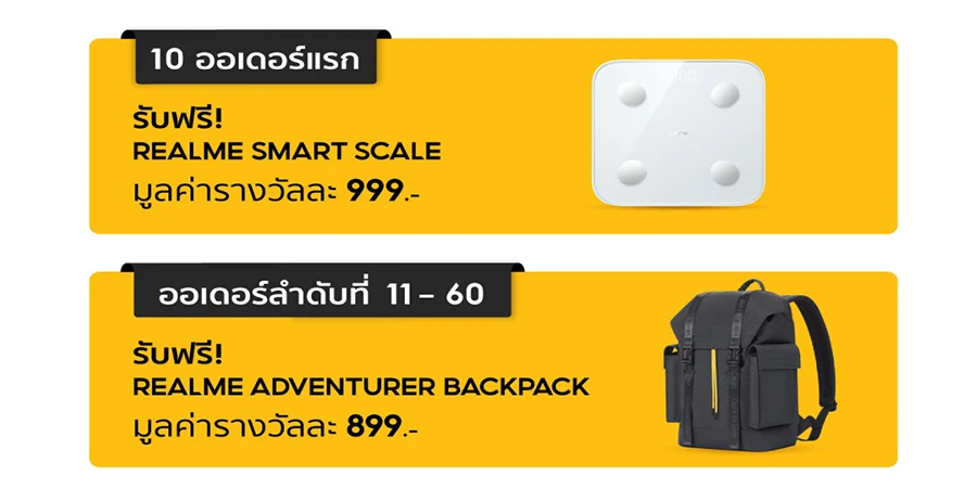 - ออเดอร์ที่ 1-10 รับทันที! realme Smart Scale สีขาว มูลค่า 999 บาท