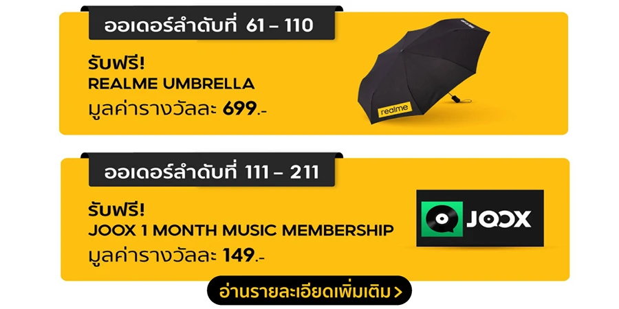 - ออเดอร์ที่ 61-100 รับทันที! realme Umbrella สีดำ มูลค่า 699 บาท