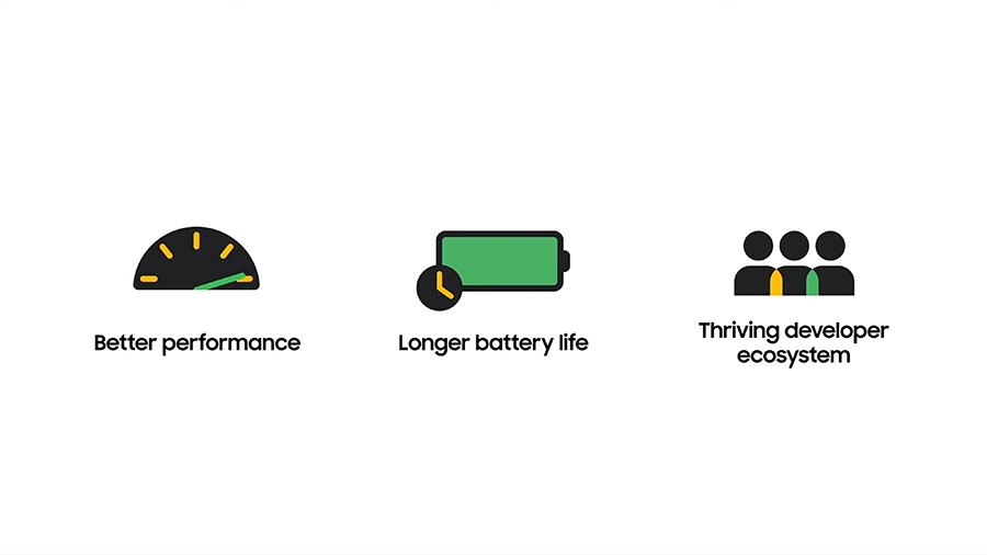 ซัมซุงได้ร่วมมือกับ Google เพื่อเตรียมที่จะรวมสิ่งที่ดีที่สุดจากสองแพลตฟอร์มด้านอุปกรณ์สวมใส่ อย่าง Tizen และ Wear OS มาไว้ภายใต้แพลตฟอร์มเดียว ซึ่งจะทำให้ระบบนิเวศของแอปพลิเคชันต่างๆ กว้างขึ้น พร้อมเพิ่มเติมประสิทธิภาพอันทรงพลัง รวมถึงแบตเตอรี่ที่ใช้งานได้ยาวนานกว่าเดิม จากแผนพัฒนาดังกล่าว ผู้ใช้จะได้เพลิดเพลินกับหลากหลายแอปพลิเคชันจาก Google ได้โดยตรงผ่าน Samsung Galaxy Watch ไม่ว่าจะเป็น Google Maps, YouTube Music และ Messages รวมถึงแอปพลิเคชันยอดนิยมอื่นๆ ทั้งทางด้านสุขภาพ การออกกำลังกาย และความบันเทิง อย่างเช่น Adidas Running, GOLFBUDDY Smart Caddie, Swim.com, Strava, Calm, Sleep Cycle และ Spotify