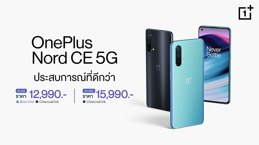 OnePlus ประเทศไทย เปิดตัวสมาร์ทโฟนใหม่ OnePlus Nord CE 5G อย่างเป็นทางการ ภายใต้สโลแกน "ประสบการณ์ที่ดีกว่า" เพื่อนำเสนอสมาร์ทโฟนที่ตอบโจทย์ทุกความต้องการ มอบคุณสมบัติที่จำเป็น และทรงพลังในราคาที่เบากว่า ภายใต้การออกแบบที่สวยงามทันสมัยยิ่งกว่าเดิม ที่จะทำให้คุณสนุกไปกับทุกช่วงเวลาของชีวิตได้อย่างเต็มที่ ด้วยชิปเซ็ต Snapdragon 750G, 5G อันทรงพลัง, หน้าจอ AMOLED ลื่นไหล 90 Hz, ระบบกล้องหลักคมชัด 64 MP, แบตเตอรี่ 4,500 mAh และ Warp Charge 30T Plus ที่ปรับปรุงใหม่ขึ้นมาพิเศษ พร้อมกับระบบปฏิบัติการ OxygenOS 11 อันเป็นเอกลักษณ์ของ OnePlus ที่รวดเร็วและลื่นไหล เพื่อมอบประสบการณ์การใช้งานที่ดีกว่าสำหรับผู้ใช้งาน มีให้เลือกทั้งหมด 2 สี ได้แก่ สีดำ Charcoal Ink ที่ได้แรงบันดาลใจมาจากหยดหมึกสีดำ ผิวสัมผัสสะท้อนเงา เหมือนหยดหมึกใส และสีฟ้าพิเศษที่ต่อยอดจากสีเอกลักษณ์ของ OnePlus Nord รุ่นแรกกลายมาเป็น OnePlus Nord CE 5G ในสีฟ้า Blue Void ให้ความสีฟ้าแล่นแสงและเงามากยิ่งขึ้น ด้านหลังมีพื้นผิวด้านที่ต้านทานรอยนิ้วมือ เผยให้เห็นความสวยงามจากทุกมุมมอง