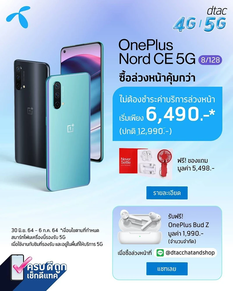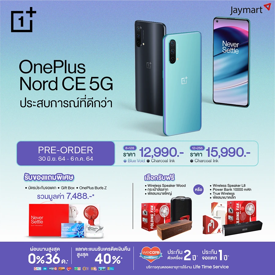 นอกจากนี้ตัวแทนจำหน่ายยังขนกองทัพโปรโมชันช่วงพรีออร์เดอร์สุดร้อนแรงมาเพื่อแฟน ๆ และผู้ที่สนใจ OnePlus Nord CE 5G โดยเฉพาะ เริ่มที่ช่องทางหน้าร้านอย่าง