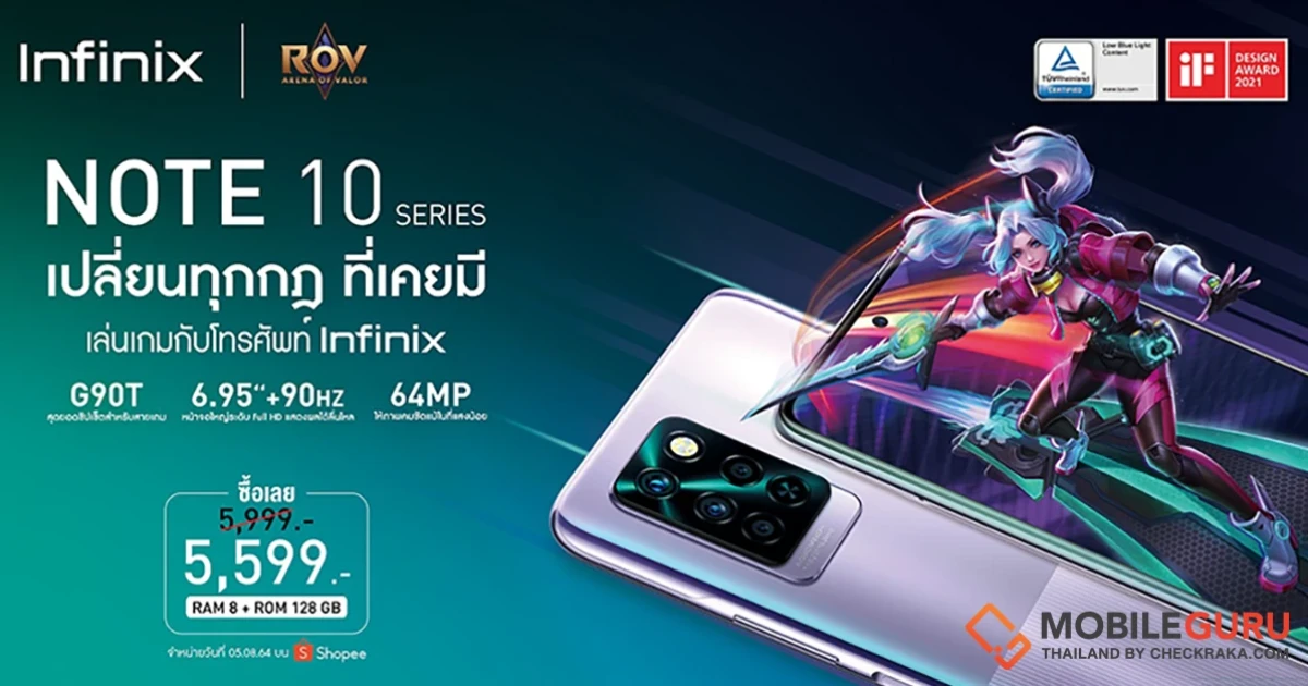 อินฟินิกซ์ (Infinix) เปิดตัวเกมมิ่งสมาร์ตโฟนที่ดีที่สุดในช่วงราคาไม่เกิน 6,000 บาท "Infinix NOTE 10 Series" โดยมาพร้อมกับสโลแกน “Game Changer – เปลี่ยนทุกกฎที่เคยมี” ซึ่งครั้งนี้อินฟินิกซ์ได้ร่วมเป็นสปอนเซอร์ให้กับเกม RoV ในกิจกรรมสุดพิเศษ RoV Show Match Event และ RoV Pro league ที่มีเหล่าเซเลบริตี้ ยูทูบเบอร์ และนักแข่ง E-Sport มากมายมาร่วมในกิจกรรม นอกจากนี้ยังได้เกมมิ่งอินฟลูเอนเซอร์ชื่อดังอย่างน้องบิวจากเฟซบุ๊กเพจ GamToh Ch และอดีตนักกีฬา E-Sport อย่าง 'วาน้อย' จากเฟซบุ๊กเพจ Wanoiz มาร่วมสร้างสีสันในหนังโฆษณาและเป็นโปรดักส์แอมบาสเดอร์อีกด้วย