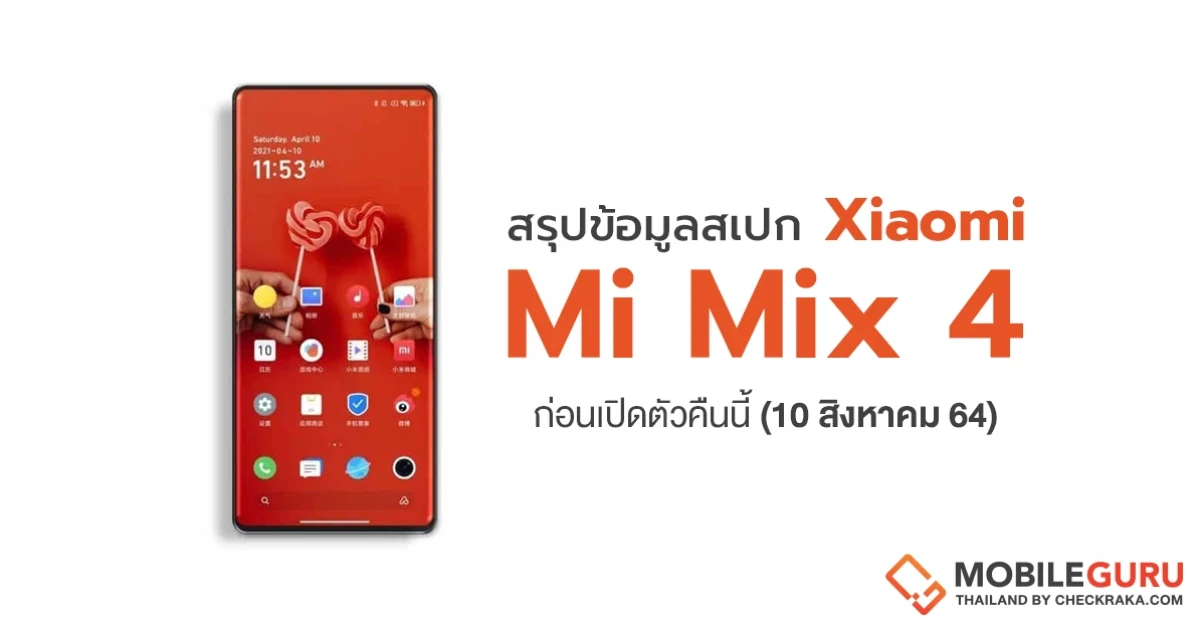 สรุปข้อมูลสเปก Xiaomi Mi Mix 4 ก่อนเปิดตัวคืนนี้ (10 สิงหาคม 64)