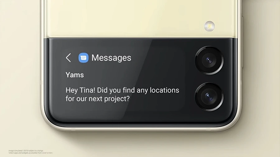 นอกเหนือจากความทนทานของตัวเครื่องและหน้าจอที่เพิ่มขึ้นกว่า 80% แล้ว อีกหนึ่งไฮไลท์ของ Galaxy Z Flip3 5G ที่แตกต่างจากรุ่นก่อนอย่างเห็นได้ชัดคือหน้าจอด้านหน้า หรือ Cover Screen โฉมใหม่ที่มีขนาดใหญ่กว่าเดิมถึง 4 เท่า จึงสามารถเช็คการแจ้งเตือนหรือเลื่อนดูข้อความได้ถึง 8 บรรทัดโดยไม่จำเป็นต้องกางเครื่องออก อีกทั้งยังสามารถดูพรีวิวขณะถ่ายเซลฟี่หรือวิดีโอได้สะดวกยิ่งขึ้นด้วย