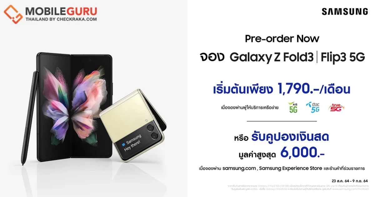 เปิดจอง Galaxy Z Fold3 | Flip3 5G วันนี้ ราคาเริ่มเพียง 1,790 บาทต่อเดือนเท่านั้น ถึง 9 ก.ย. 64