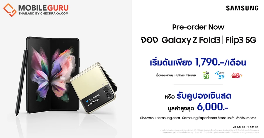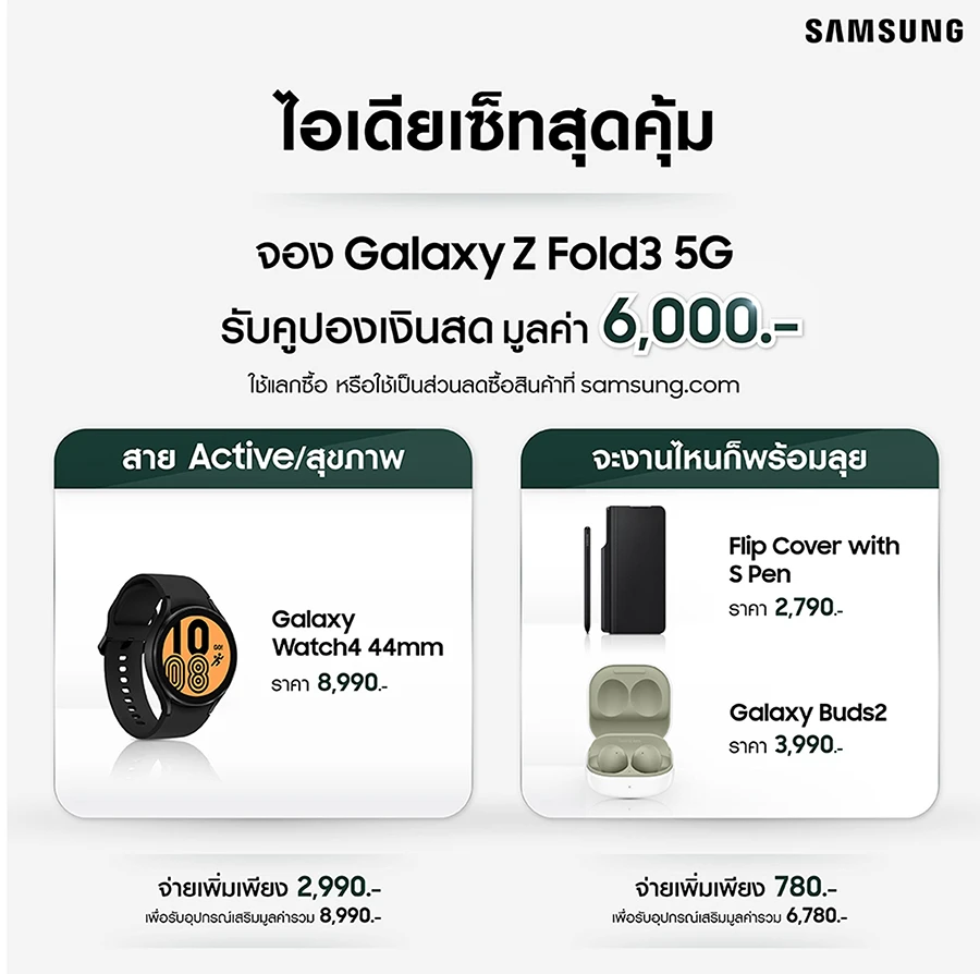 สำหรับลูกค้าที่ซื้อ Galaxy Z Fold3 5G และได้คูปองเงินสดมูลค่า 6,000 บาท
