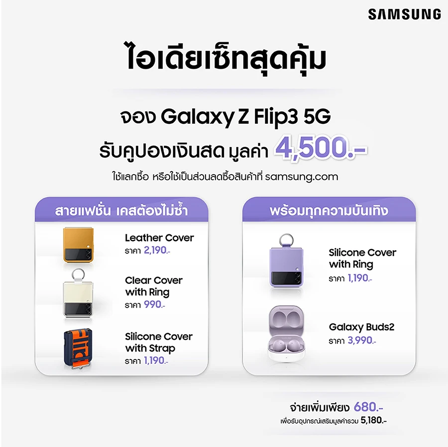 สำหรับลูกค้าที่ซื้อ Galaxy Z Flip3 5G และได้คูปองเงินสดมูลค่า 4,500 บาท