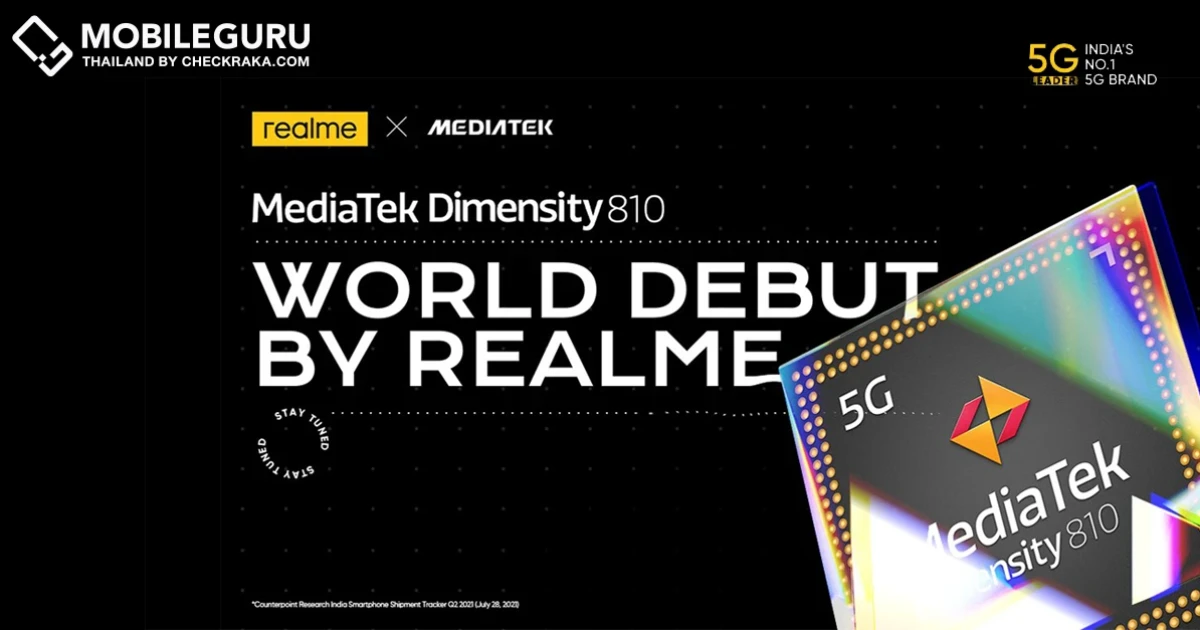 realme ยืนยัน! เตรียมเปิดตัวสมาร์ตโฟนที่ใช้ชิปประมวลผล Dimensity 810 5G เป็นรุ่นแรกของโลก