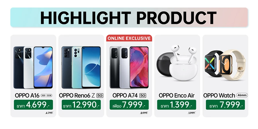 - OPPO A74 5G สมาร์ทโฟน 5G รุ่นแรกใน OPPO A Series พิเศษ 7,999 บาท จากปกติ 8,999 บาท