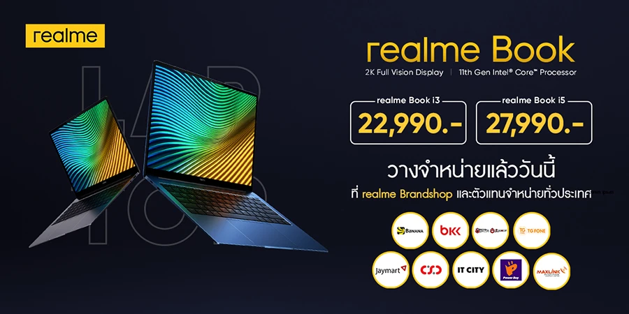 นอกจากนี้ realme ได้ประกาศขยายผลิตภัณฑ์เทคโนโลยีในหมวดแล็ปท็อปเป็นครั้งแรกกับ realme Book ที่มาพร้อมจอแสดงผลแบบ Full Vision ขนาด 14 นิ้ว ความละเอียด 2K ขับเคลื่อนด้วยโปรเซสเซอร์ Intel® Core เจนเนอเรชั่น 11 และระบบระบายความร้อนแบบคู่ ช่วยให้สามารถเล่นเกมหรือทำงานได้อย่างมีประสิทธิภาพไม่สะดุด รองรับเทคโนโลยี Super-Fast Charge 65W สามารถใช้งานยาวนานได้สูงสุด 11 ชั่วโมง มีลำโพง HARMAN 2 ตัว รองรับเอฟเฟกต์เสียงสเตอริโอ DTS HD สามารถตัดเสียงรบกวนแบบ Dual Mic เหมาะสำหรับการทำงานและการเรียนออนไลน์ และดีไซน์ตัวเครื่องที่บางเฉียบ 14.9 มม. มีให้เลือก 2 สี ได้แก่ สีน้ำเงินและสีเทา