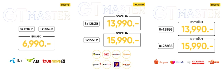 สำหรับราคาของ realme GT Master Edition Series มาพร้อมกัน 2 ราคากับ 2 ความจุ ได้แก่