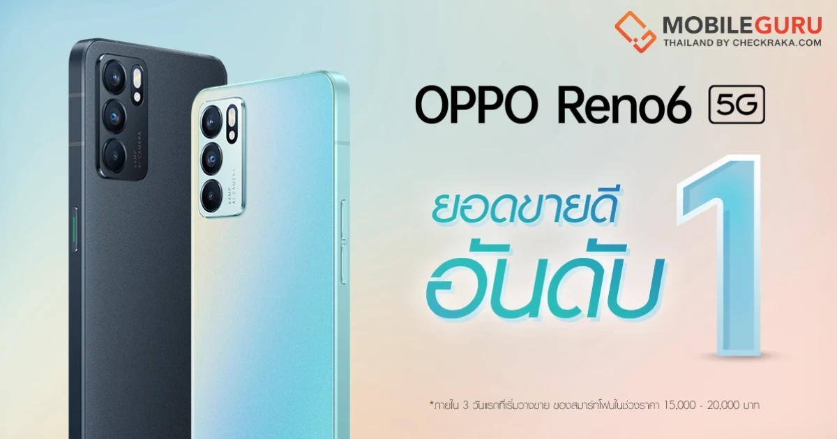 OPPO Reno6 5G มาพร้อมสโลแกน “อารมณ์ไหน ก็พอร์ตเทรต” ถือว่าเป็นสมาร์ทโฟนระดับกลางที่ได้รับกระแสตอบรับดีเกินคาดทั้งจากสื่อมวลชนและลูกค้าหลังจากที่เปิดตัวอย่างเป็นทางการ โดยมีข้อมูลล่าสุดจากออปโป้ ไทยแลนด์เผยว่ากวาดยอดขายดีอันดับ 1 ในตลาดสมาร์ทโฟนช่วงราคา 15,000 - 20,000 บาท ภายใน 3 วันแรกที่เริ่มวางขาย