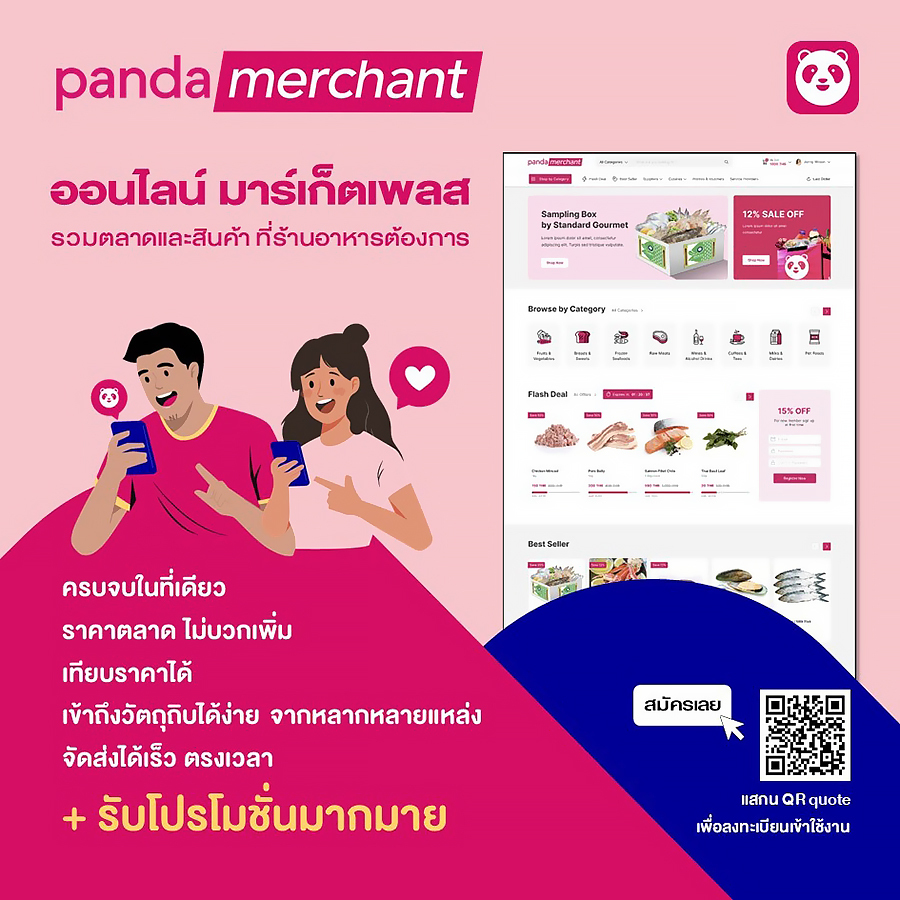 foodpanda ตอกย้ำความเป็นผู้นำด้านการให้บริการสั่งซื้อและจัดส่งอาหารเดลิเวอรี่ผ่านแอปพลิเคชันในภูมิภาคเอเชียและประเทศไทย เดินหน้ารุกตลาดในช่วงปลายปีนี้เต็มกำลัง ล่าสุดเปิดตัวบริการใหม่ “pandamerchant” ออนไลน์ มาร์เก็ตเพลส ตลาดครบวงจร “จัดซื้อ จัดหา จัดส่ง” สำหรับร้านอาหารแบบออนไลน์